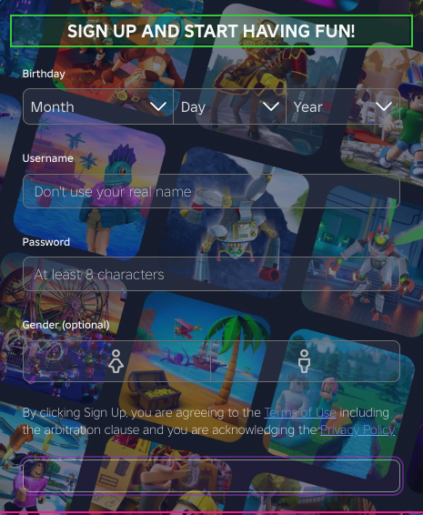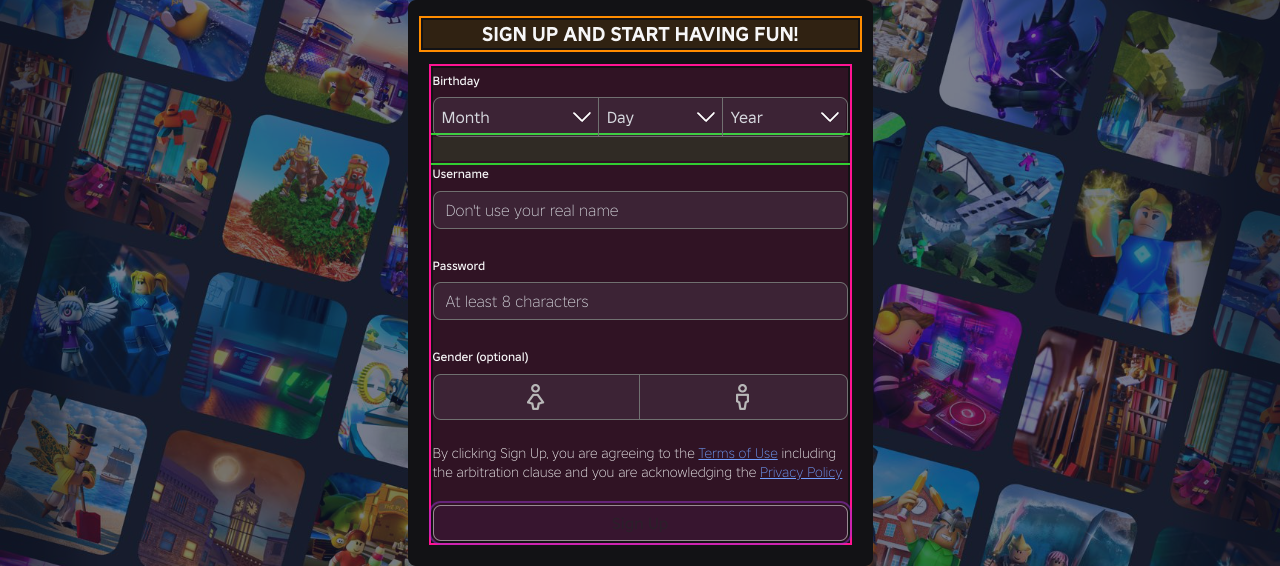 ‘Sign Up and Start Having Fun!’ Ah yes, because nothing screams excitement like bog-standard typography.